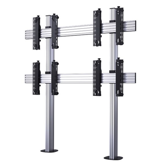 | • System X • Universal Bolt Down Videowall Stand for 2×2 • Videowalls (for 46″ to 60″ screens) • Off-the-shelf kit designed to mount 46″ (116.8cm) -60″ (152.4) screens in a 2×2 configuration• Recommended screen size: 46″ (116.8) – 60″ (152.4) • Max load: 50kg (110lbs) (per screen) • VESA® and non-VESA fixings: up to 600mmx400mm • Dimensions: W: 2005mm (78.9″) H: 1806mm (71″) up to 2007mm (79″) • Base Thickness: 6mm (0.23″) • Colour (base & interface arms): Black • Colour (columns & rails): Black or Silver • Full product specification sheet available on the Downloads tab |